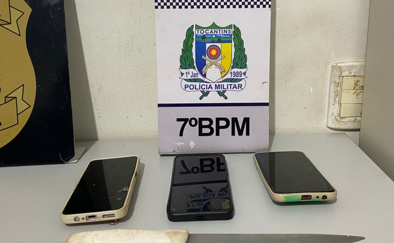 Os policiais localizaram e apreenderam a faca utilizada no crime e recuperaram os bens roubados. O homem foi preso em flagrante e conduzido à 7ª Central de Flagrantes de Guaraí, juntamente com as vítimas, os objetos recuperados e a arma apreendida, para os devidos procedimentos legais. (PMTO)