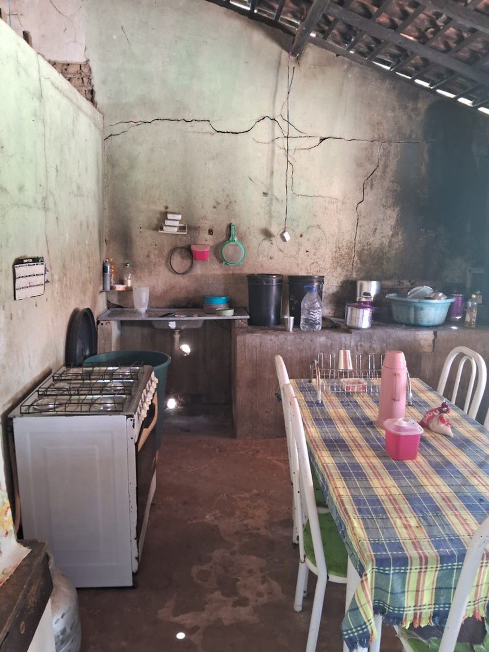 O alojamento apresentava sérios riscos à saúde e à segurança, com fiação elétrica exposta, instalações improvisadas e acesso limitado à água potável, restrito ao andar superior da residência.