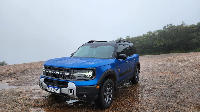 O trajeto fora de estrada ocorreu na subida da Pedra Grande, em Atibaia, em um dia de chuva intensa, o que elevou significativamente o nível de exigência do percurso. O solo escorregadio e os trechos irregulares permitiram explorar os recursos específicos do Bronco Sport 2025, como a tração integral, o diferencial traseiro blocante e o sistema de gerenciamento de terreno.