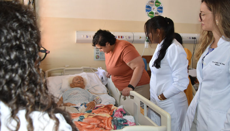 O médico ressaltou ainda que os principais objetivos do atendimento ao idoso são restaurar a função, aliviar a dor e prevenir complicações decorrentes da imobilidade, como infecções, tromboses e perda funcional. Ele destacou a atuação da equipe de Geriatria na avaliação global pré-operatória, estratificação de riscos, otimização clínica e acompanhamento pós-operatório. Também reconheceu o trabalho dos cirurgiões ortopédicos Thayane Cabral e Alessandro Cabral, que conduziram o procedimento.